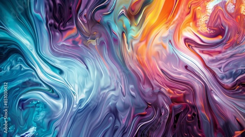 Abstract background of swirling iridescent ribbons of color like oil paint