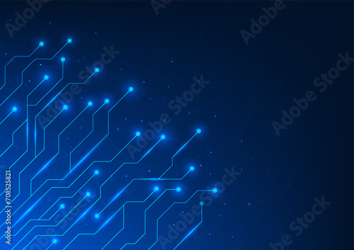 Abstract background technology The technology circuit lines are inside the high tech electronic device's memory board for transmitting digital data. Blue background vector illustration