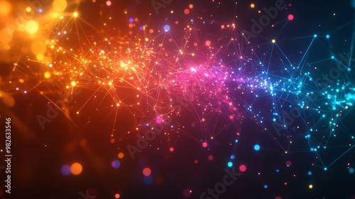 Abstract background with a glowing network of interconnected points and lines, creating a vibrant and dynamic pattern. .