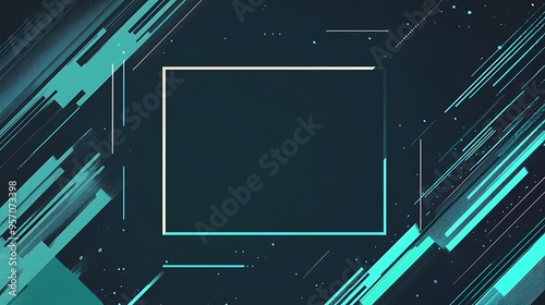 Abstract Background with a White Square Frame and Diagonal Cyan Lines