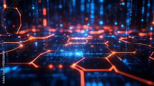 Abstract background with blue glowing hexagons 3D