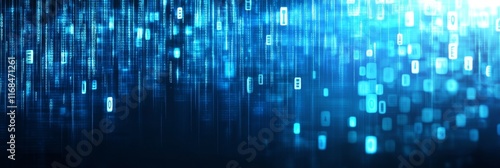 Abstract Background with Blue Glowing Lights and Digital Data on Dark Background