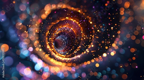 Abstract background with colorful glow swirls and bokeh lights Glittering spiral of light particles