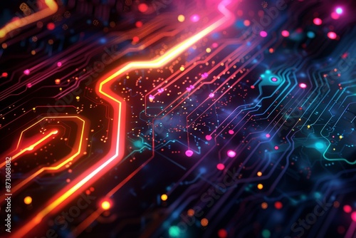 Abstract background with colorful light rays and glowing digital elements