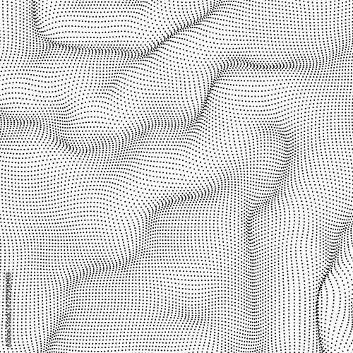 Abstract Background with Dotted Halftone Waves. Twisted Pattern with Dots. Vector Modern Optical Illusion Texture