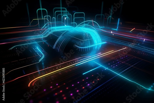 abstract background with glowing lines.