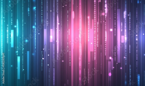 Abstract Background with Gradient of Pink and Dark Blue Featuring Pixelated Digital Binary Code Patterns