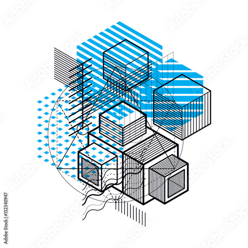 Abstract background with isometric elements, vector linear art w