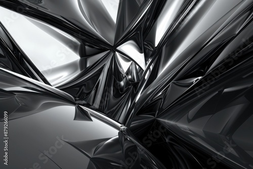 Abstract background with smooth reflective black geometry. Concept of futuristic design, technology, or modern art.