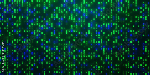 Abstract binary code background. Digital technology, cyber space and big data concept. 3D render illustration.