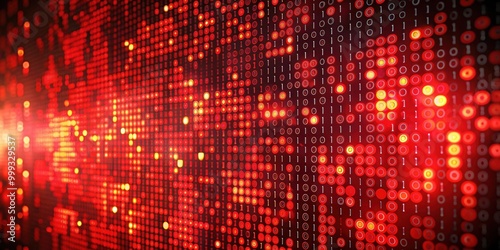 Abstract binary code interlaced with red signs, technology, data, computer, digital, cybersecurity, coding