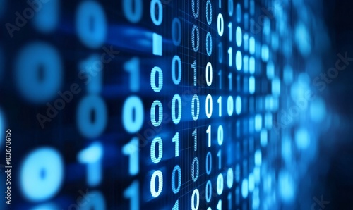Abstract binary code on a digital screen, illustrating the concept of data, information, and computer technology in a modern digital world.