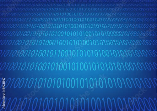 Abstract binary code on blue screen background.