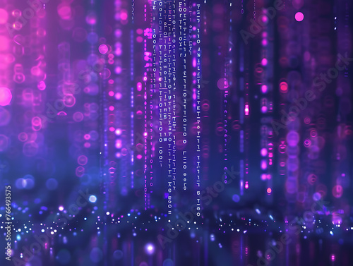 Abstract Binary Code Rainfall Digital Art Technology Background.