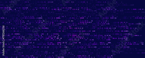 Abstract Binary Software Programming Code Background. Random Parts of Program Code. Digital Data Technology Concept. Random Binary Data Matrix Wide Vector Illustration.