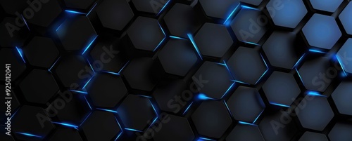 Abstract Black and Blue Hexagonal Pattern with Glowing Edges