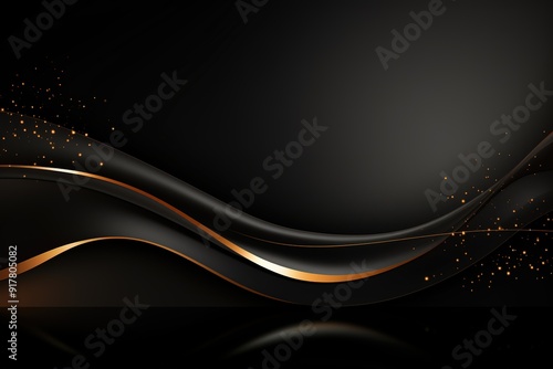 Abstract black and gold wave background with glittering lights.