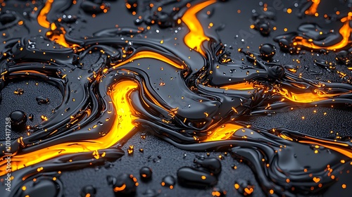 Abstract Black and Orange Liquid Flowing Texture Background