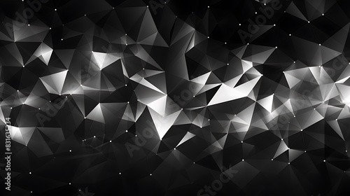 Abstract black and white background with random geometric triangle pattern
