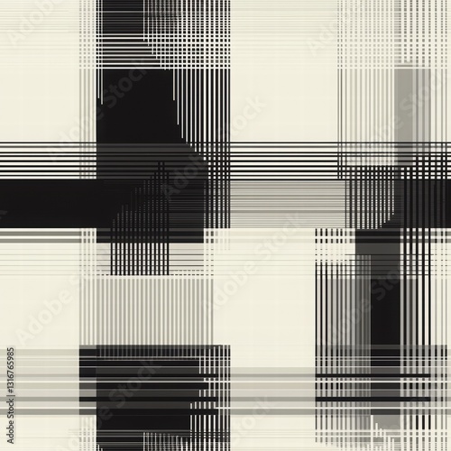 Abstract Black and White Geometric Pattern with Horizontal and Vertical Lines