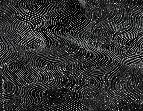 Abstract Black And White Wavy Glitter Lines Design
