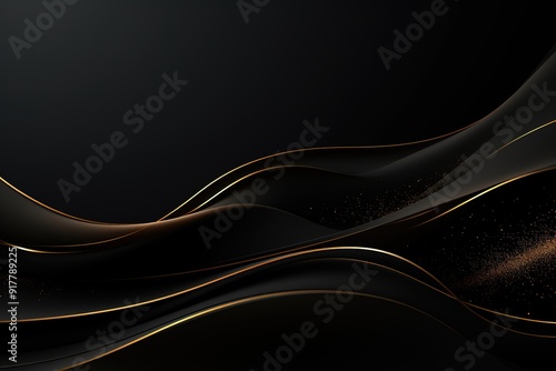 Abstract black background with gold lines and glitter.