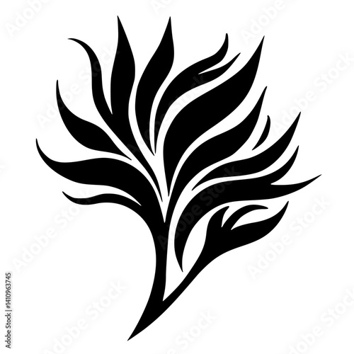 Abstract Black Floral Design on White Background