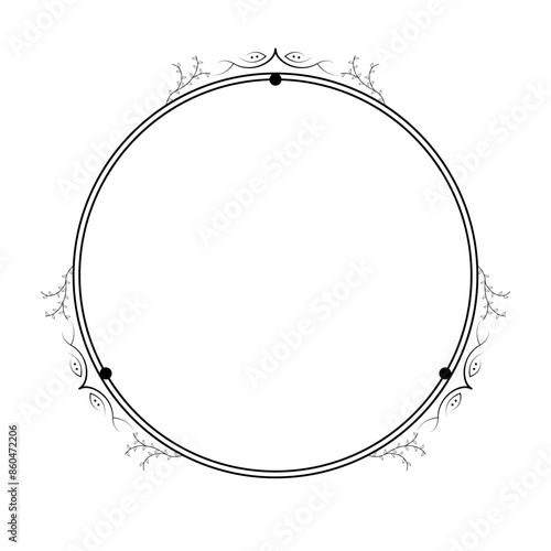 Abstract Black Simple Line Round Circle With Leaf Leaves Frame Flowers Doodle Outline Element Vector Design Style Sketch Isolated Illustration For Wedding And Banner