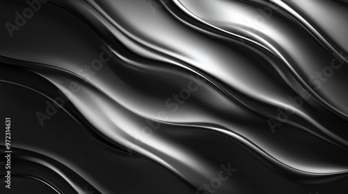 Abstract black waves undulate elegantly over a smooth surface, creating a dynamic flow of light and shadow.