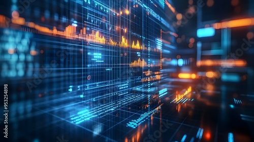 Abstract Blue & Orange Digital Data Network Background