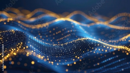 Abstract blue and gold digital wave background.