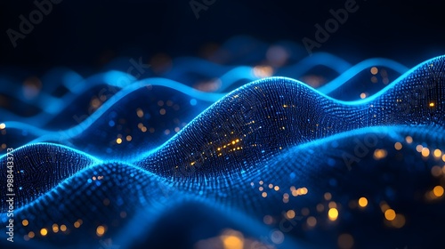 Abstract Blue And Gold Digital Wave Background