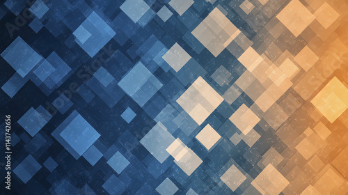 Abstract blue and orange background with squares creating dynamic feel