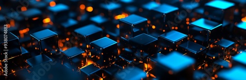 Abstract Blue and Orange D Cubes Pattern Technology Background