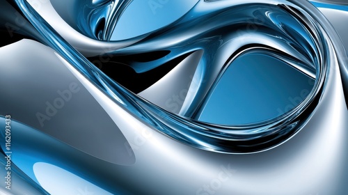Abstract Blue and Silver Liquid Swirls Design