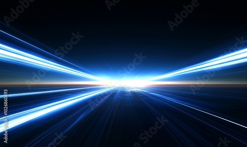 Abstract blue and white light streaks on a dark background, creating a sense of speed and movement.