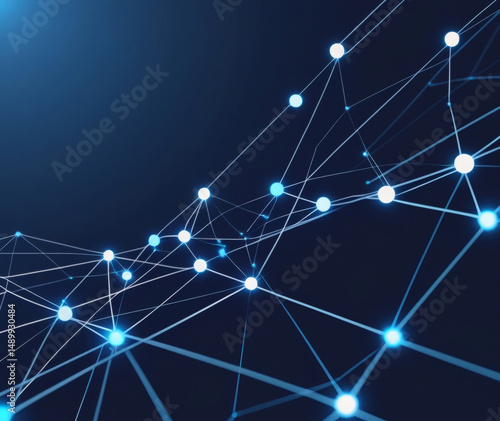 Abstract blue backdrop with digital network connection lines and stars create a technology concept with a geometric pattern design