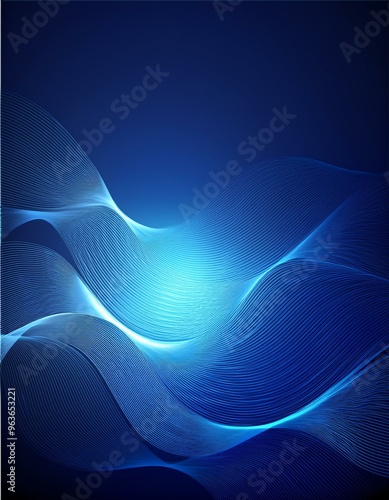 Abstract blue background with a glowing wave line illustration