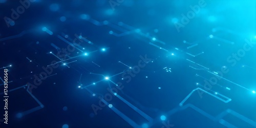 Abstract blue background with glowing circuit board lines and dots, creating a futuristic and technological feel, with a gradient from dark to light blue.