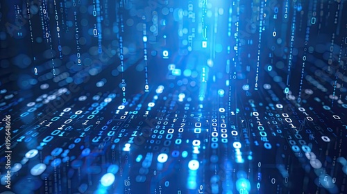 Abstract blue background with glowing lines and binary code elements, perfect for technology and data concepts