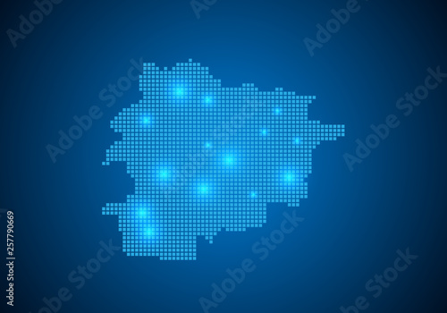 Abstract blue background with map, internet line, connected points. map with dot nodes. Global network connection concept. Wire frame 3D mesh polygonal network line. vector.