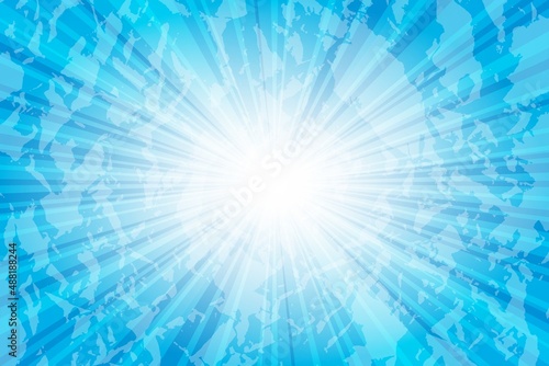 Abstract blue background with sun ray. Summer vector illustration