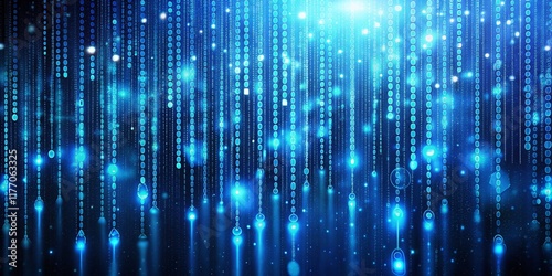 Abstract Blue Binary Code Data Technology Matrix Background - Digital Innovation Concept