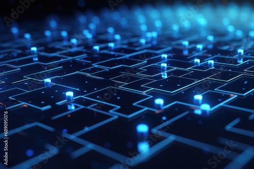 Abstract blue circuit board background. Technology concept. 3D Rendering, Abstract digital connection dots and lines, Technology background, AI Generated