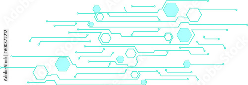Abstract blue computer technology background with circuit board and hexagon tech.illustration for elements