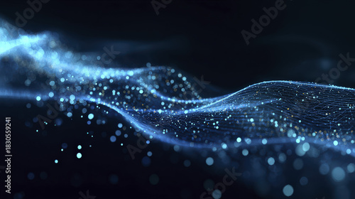 Abstract Blue Data Mesh with Bright Spheres and Nodes
