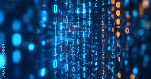 Abstract blue digital background with glowing connections and dots forming lines on the surface of an abstract dark landscape. The network connection concept symbolizes global data transfer, internet