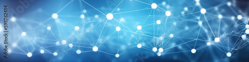 Abstract blue digital data social network communication background. Polygonal structure. AI generative illustration.