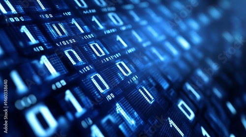 Abstract blue digital data stream background technology ones and zeros web code cyber binary future