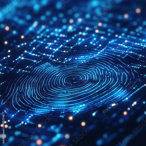 Abstract Blue Digital Fingerprint Pattern - Futuristic Technology, Cybersecurity, Biometrics, Authentication, Privacy, Security, Data Protection Concept.